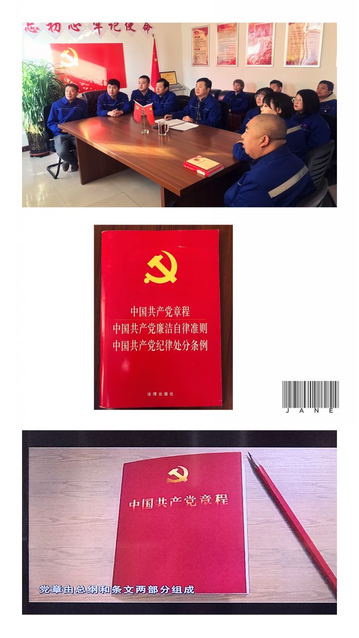會上,集體觀看了黨章電視輔導材料,分別從黨章總述、共產黨員、黨的組織、黨的干部、黨的紀律等5個方面對黨章進行了深入解讀。以輪流誦讀的形式學習了《關于新形勢下黨內政治生活的若干準則》《中國共產黨紀律處分條例》《中國共產黨廉潔自律準則》。